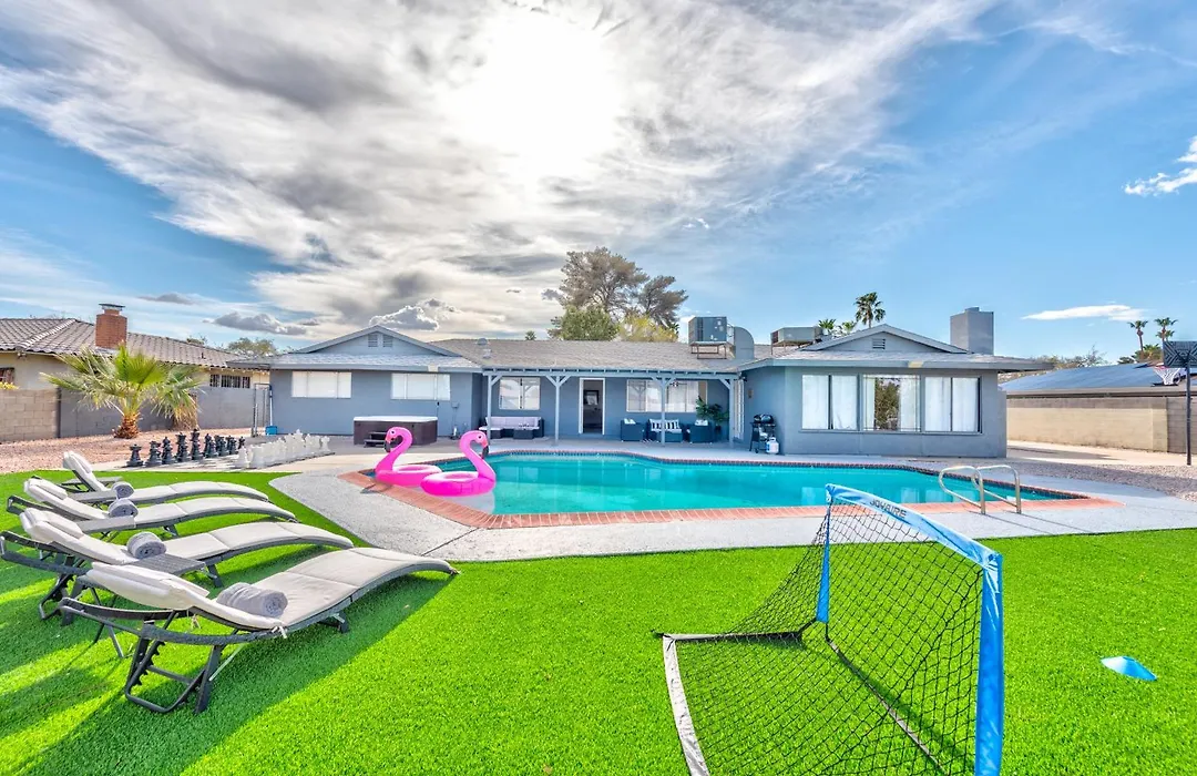 Vila Hearts includes an equipped kitchen, as well as a dining area for self-catering. The kitchen also offers an electric kettle, a refrigerator, and an oven. American specialties are served at Blueberry Hill, located just a few steps from this Las Vegas villa. The property can be reached by car in 15 minutes from McCarran International airport. A hot tub and a sauna are available on-site.